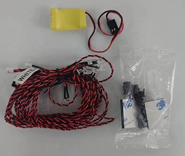 点灯パターンは1つのみで変更できませんが、その分、受信機の空きチャンネルに接続するだけのシンプル構造で扱いが楽です。 電力消費の少ないLEDなので電源は受信機と共用になり、受信機が通電した際にライトシステムも通電されます。(消費電流は0.03A程度) LEDの輝度が飛行中もよく見えるほどではないので駐機中や離着陸時などにスケール感をお楽しみ頂けます。 軽量なのでスパン1m程度の小型の機体にも搭載可能です。 LEDのコード接続部分は半田付けされていますが、曲げると折れたり半田付け部分が外れてしまう場合がありますのでこの部分を極力まげないよう注意しながら取り付け作業をして下さい。 【 サイズ、付属品 】 システム全体重量:約25g ホワイトLED 4個(コード長:58cm) グリーンLED 1個(コード長:58cm) レッドLED 3個(コード長:58cm) パワー/コントロールケーブル 1個(コード長:20cm) コントローラー本体(34x22x8mm) LEDの透明球体部分のサイズ:円筒形の部分の直径4.8mm、根元の円盤状の部分5.7mm、全体の高さ8.9mm 英語マニュアル 【 スペック 】 対応電圧:4.8V~6.0V(受信機からの供給電源) ※LiFe6.6Vは利用可、LiPo7.4Vは利用不可 動作電流:30mA ※消費電流は少ないですが、受信機と共用のため、フライト前には必ずバッテリーの残量チェックをして下さい。 【 配線方法 】 付属英語説明書の配線図を参考にコントローラー本体と各LEDを接続して下さい。 赤黒のコードはライトシステムへ電源を供給するためだけなので受信機の空きチャンネルに接続して下さい。空きチャンネルがない場合はてきとうなチャンネルにY字コードを入れて接続して下さい。 LED電源はこのコードを通じて受信機側から供給されますので別電源を用意する必要はありません。 プロポからの操作で点灯パターンを切り替えたり、消灯させたりすることはできません。 |