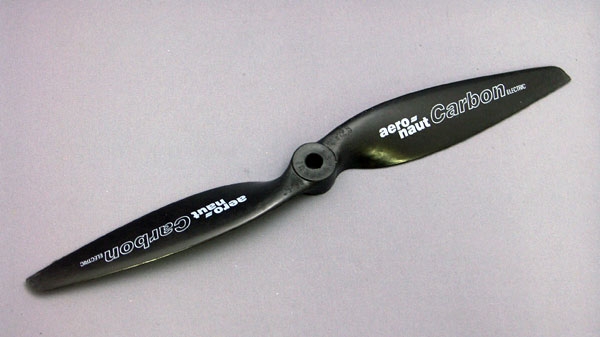ナイロンにカーボンを練り込み、高回転でも比較的ピッチの戻りがないため、回転トルクを確実に飛行パワーに変換する。電動機専用。カーボンブラックカラーが精悍。