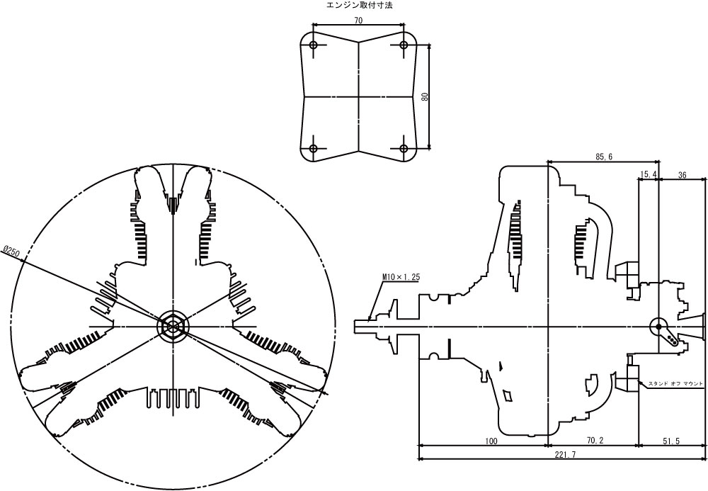 行程容積:Displacement: 32.98cc ボア:Bore: 27.0Φmm x 3 ストローク Stroke: 19.2mm x 3 常用回転数 Practical rpm: 1,700~9,500rpm 静止推力 Static thrust: 4~4.5kgf(プロペラによる) プロペラ Prop: 16×8in~18×6in 重量 Weight: 本体1,440g マフラー約90g イグニッション200g マウント一式約90g |