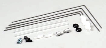 インドア/パークフライ用マイクロ・エルロン・システムです。L字ロッド長2本、L字ロッド短2本、EZコネクター2個、主翼とエルロンの間に通すチューブ2本、EZリンク2個、トルクロッドホーン2個および長さ調整用キャップボルト2本で1セットになっています。