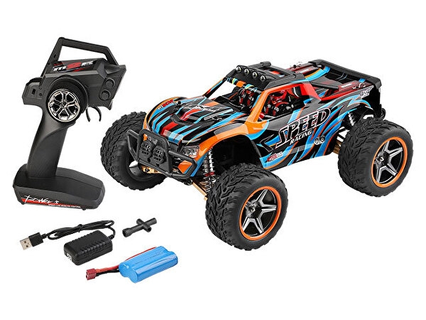 タフで安定性が高いまさにオールラウンドモンスタートラック! 550ブラシモーターと適正なギヤ比でMAX45km/hのハイスピード走行 ロングストローク+大容量ダンパーの新サスペンションで高所からの衝撃を吸収 登坂力は45度、岩場での転倒や後退をリアウイリーバーで防ぎます オンロードでもオフロードでもうまくグリップするミディアムコンパウンドタイヤ 高輝度LEDのヘッドとテールライト、4連ルーフライトを装備 ジャンプ中にタイヤ・パワーの操作で空中姿勢を楽しめるドライブトレイン機構 送信機に最高速度を制限できるスロットルD/Rを装備。初心者や狭い場所でも楽しめます 基本仕様 スケール 1/10 SCALE 周波数 2.4GHz 通信距離※最大 約100m バッテリー Li-ion 7.4V 1500mAh 製品サイズ ○全長 : 380mm ○全幅 : 275mm ○全高 : 195mm 重量 約1978g ホイルベース 230mm トレッド幅 169.5mm タイヤ径×幅 105×52mm 最高速度※45km / h モーター 550 カーボンブラシモーター 充電時間※ 約3時間 走行時間※ 約8分 ※走行環境、バッテリーの状態により異なります。 |