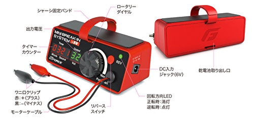 スイッチひとつで正転・逆転切り替え可能! モーター&ギアを効率的にブレークイン! モーター正転・逆転切替えスイッチを搭載 0.1V(最大6.0V)単位で好みの電圧に設定が可能 慣らし時間の管理に便利なオフタイマー機能 1/24~1/32スケールの電動模型に最適なサイズ ロータリーダイヤルでクルクル・ピッピッのカンタン操作 マジックテープ式ベルトでシャーシ・モーターを確実に固定 |