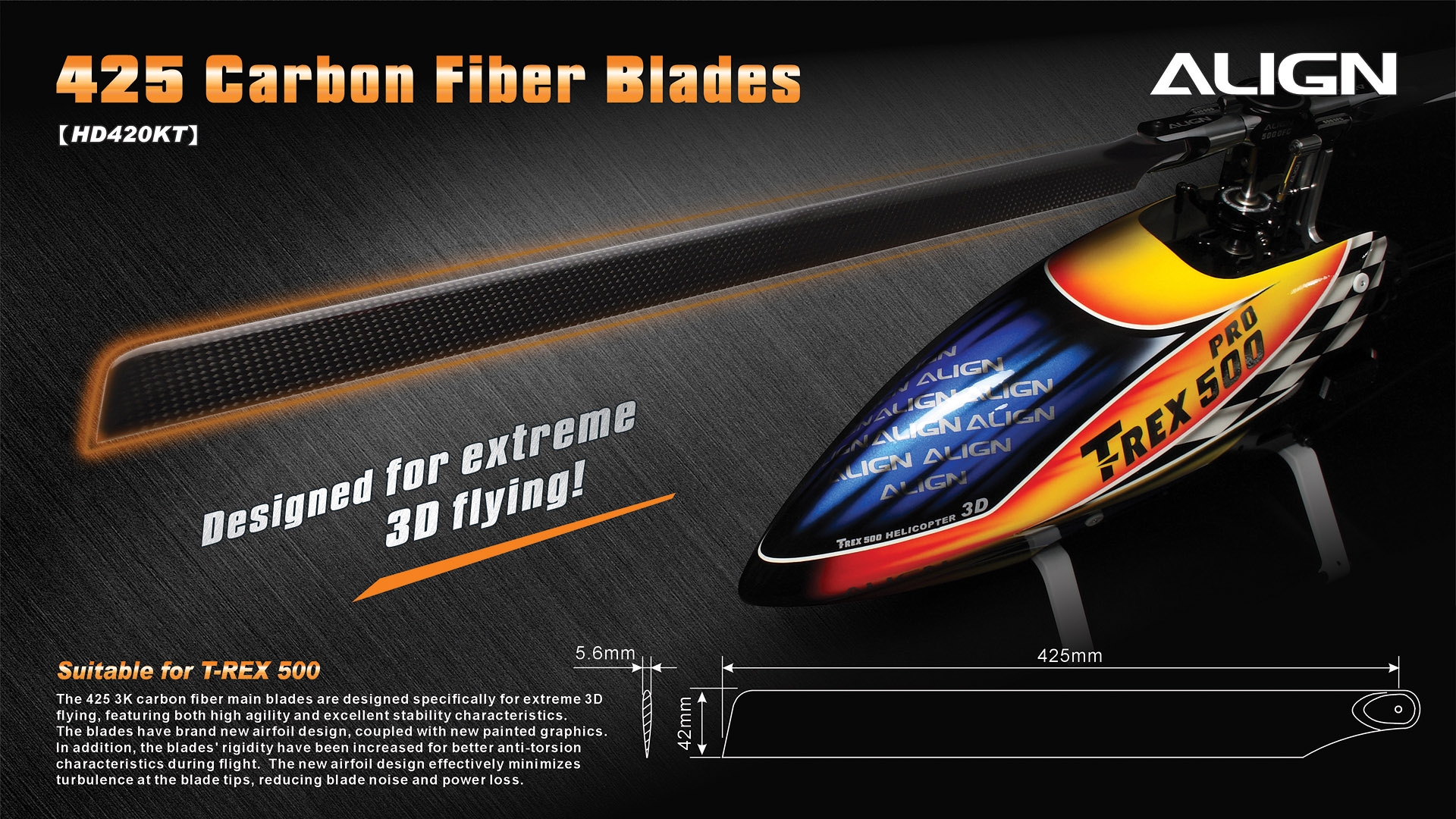 ALIGN [HD420K]425 Carbon Fiber Blades-Black