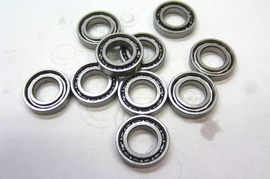 外径13ミリ、内径7ミリ、厚さ3ミリのオープンシールド・ボールベアリング(10個入り)です