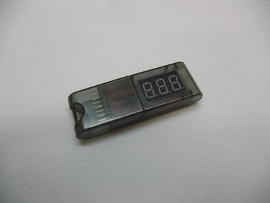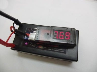 Lipoバッテリーパックの電圧を数値で確認できる電圧計です。バランスコネクターに差し込むと次の数値を表示します