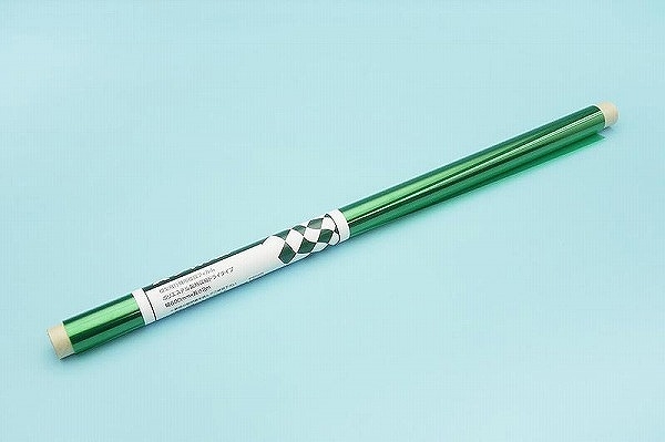当社模型飛行機のカバーリング用熱収縮フィルムです。フィルムは熱を加えることで収縮する性質を持ち、その裏に塗布されている接着剤は温度が高くなった時に接着力を発揮しますので、アイロンやドライヤーを使ってフィルムを加熱することでシワやタルミを無くすると同時に接着が出来ます。この接着剤は常温に戻るとベタベタとくっつきませんので、裏シートを剥がした後でも扱いやすくなっています。