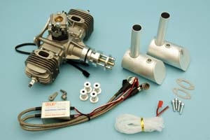 DLE-60BT(ボクサーツイン)は軽量、ハイパワーで好評を博しているDLE30ccガソリンエンジンをベースに水平対向2気筒としたもので、ポピュラーな、水平対向エンジンを積んだアクロ機や軽飛行機のスケール機に最適です。