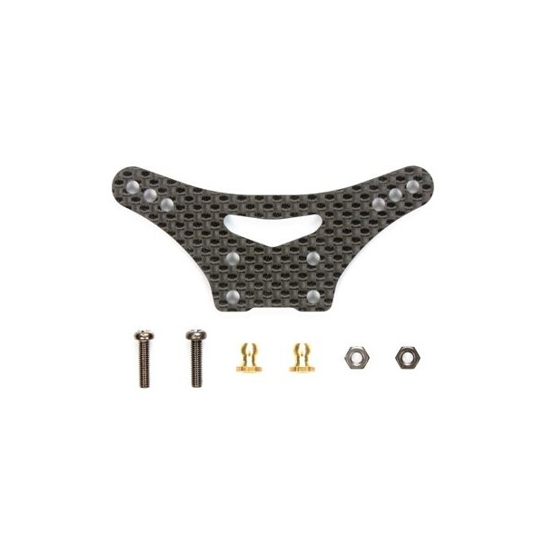 キット標準のM1パーツと交換して仕様します。 3.5mm厚のカーボン製でねじれやたわみが無く、ダンパーの作動効果を高めます。 (※TRF502Xは標準装備) |