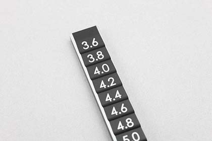 ツーリングカーの車高計測に最適なアルミ製ハイトゲージです。計測範囲は3.5mmから8mmで、裏表の両面に目盛りが刻んであり、0.1mm単位で計測が可能です。ブラックアルマイトにべベルエッジ処理をしたデザインで、高級感のある仕上がりとなっています。