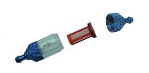そのままではブラブラして不安定なので、付属のホルダーを機体に取り付け、そこにこのフィルターをはめ込んで使います。 交換式になっているフィルターエレメントは従来のフィルターの約4倍の表面積があるため、燃料の流れを邪魔しません。 また、フィルター部分は外から見えるため、フィルターの汚れやごみを外からチェックできます。なお、本品はグロー燃料には使えません。 全長 48.5mm、最大直径 13mm、重さ 4.4g |