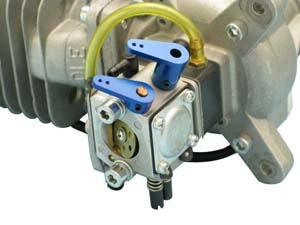 DLEエンジンなどに使用出来るアルミ製のスロットルアーム。 キャブレターに取りつける足の部分が高いタイプ(高さ16mm)と短いショートタイプ(高さ7mm)の2種類がある。 足の長さ(高さ)が異なるので、スロットルに通常タイプ、チョークバルブにショートタイプという具合に使い分ければキャブレターからの高さを違えることが出来るのでお互いのコントロールロッドが干渉することが無い。 材質はアルミ削り出しでアルマイト加工済。 コントロールロッド取付孔はホーン取付孔中心から14mmと17mmの2カ所に開けてあり、ボールリンクなどの取付に便利なように予めM2のタップが切ってある。 固定は両サイドからイモネジ2本でしっかり止めることが出来る。 |