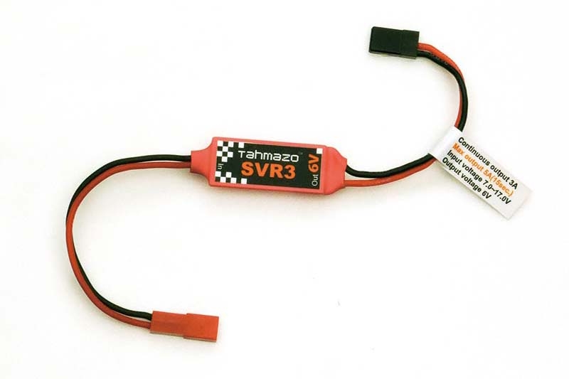 ・入力(バッテリー)側にJST-BECコネクタ・メスが付きました。 ・重量わずか8gと超軽量ながら最大6V3Aを継続して取り出すことが出来ますので、電動用アンプのBEC能力では不足する場合や、ニッカドにかわって軽量大容量の受信機電源を必要とする場合に最適です。 ・Tahmazo受信機用リポバッテリーRIGシリーズ(48795,48799)と組み合わせて使用すれば急激に負荷が変動しても受信機、サーボに供給する電圧がほとんどかわらないので受信機の安定動作につながります。 ・オプションの「パワーハーネス用スイッチ」と「オンボードリポメーター」(48791)または「オンボードリポメーターS」(48823)を本装置に接続すれば電源リポバッテリーの状態もチェック出来ます。 (注1)プロポは2.4GHz帯のものをお使い下さい。 (注2)安定して6Vを供給するために電源はリポ3セルの使用を推奨します。 |