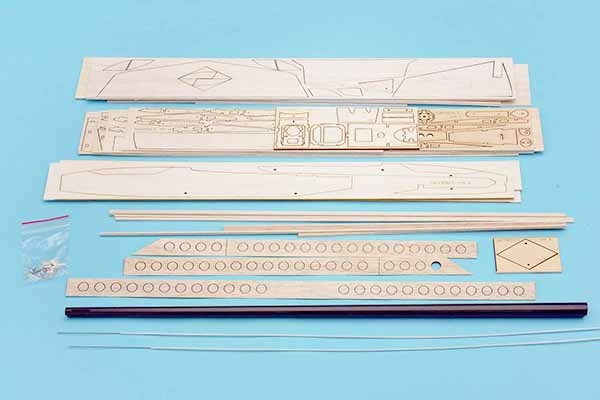 ・レーザーカット加工済み木部材料 ・バルサプランク材 ・加工済み後縁材 ・ナイロン製コントロールホーン ・リンケージ用ピアノ線 ・プッシュロッドガイドパイプ ・図面(日本語組立説明付き) ※この機体はバルサ製組み立てキットです。 ※写真の機体はキットを組み立て、フィルムを貼って仕上げた例です。 ※製作には技術や経験を必要とする部分が多くあります。 主な別途準備品 ・飛行機用プロポ送信機 ・小型受信機 ・サーボ Tahmazo TS-1014(48643) x2個 ・カバーリング用フィルム(E-ライトフィルム推奨) ・フィルム貼り用アイロン PILOT VIPアイロンType-R(47058) Type-F(47826) ・フィルム貼り用 HDヒートガン(47404) ・フィルムボンド(48259) ・瞬間接着剤 OKボンドHW(43010)、FX(43451) ・エポキシ接着剤(30分硬化型) ・PILOT バルサカンナ(47875) ・PILOT サンディングブロック(25042) ・サンドペーパー ・その他、一般的な工具(カッターナイフ、ドライバーなど) ・モーター Tahmazo ER-181212d(48558) ・折ペラブレード Tahmazo 7×4.5/6(48691) ・スピンナーハブセット Tahmazo AT30/6C2.3SM(48680) または、Tahmazo PN30/6C2.3SE(48679) ・スピードコントローラー Tahmazo Pro.C A-15(48826) ・バッテリー Tahmazo LP-3S1P360RE(48859) ・コネクター PILOT BECコネクター (47525) ・充電器 Tahmazo リポ専用充電器 (48451) 機体諸元 ・ 全長 Length:1043mm ・ 全幅 Wing Span:1408mm ・ 主翼面積 Wing Area:21.5dm2 ・ 全備重量 Weight:300-360g ・ モーター Motor:Tahmazo ER-181212d(48558) ・ RCメカ Radio:RD,EV,(ESC) ・ 飛行の難易度:入門者向け ・ 機体の完成状態:バルサ組立キット ・ 搭載可能なパワーユニット:電動モーター |