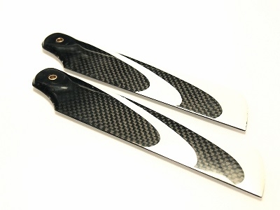 今回のテールローターは今までにない形状になっています。 幅をかなり狭くし、根元から先端にかけてテーパー形状です。 さらに翼が薄く、超軽量です。 この効率の良い形状がジャイロ性能を最大限に発揮! これまでとは一味違う、ラダーの感覚を実現できました!! また取り付けた格好良さも求め、よりスマートに見えるデザインになっています。 長さ:110mm 重さ:4.5~5.0g 翼弦:23~24mm 取り付け穴:3mm |