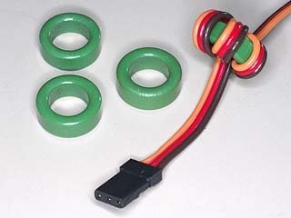 サーボ、ESCケーブルや延長コードに使用します。上図のようにリングの中心に2回から3回通します。隙間のないようにしっかり巻いてください。
