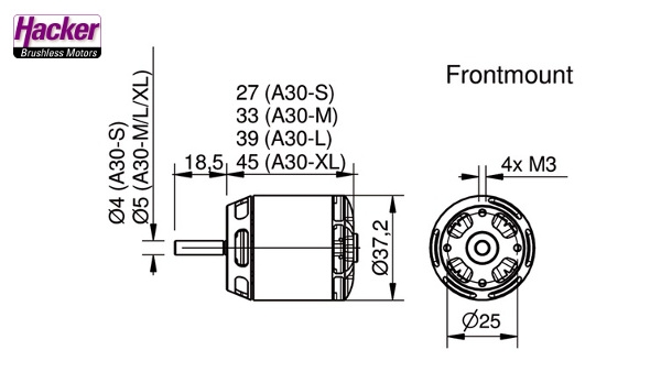 ●1800g-3200g位までのスポーツ機、グライダー、3Dファンフライ機に最適。エンジン機21-32クラスに匹敵。 ●バックマウント用クロスマウント、6穴固定プロペラアダプター、コレットプロペラアダプター付属。3.5mmゴールドコネクター装着済み、なお写真の取り付け穴位置決め用円形べニア板は付属しません ●使用例1(3セル) ペラ:14X9E V/Lipo:11V=3S 回転数6100rpm 出力:550W 電流値50A ●使用例2(4セル) ペラ:14X7E V/Lipo 14.5V=4S 回転数:8500rpm 出力:681w 電流値:47A Specification: KV値 700 U/min-1 出力最大 650W(15秒) アイドル電流値 @ 8,4V 1,5A サイズ 直径:37.2mm、全長:46mm 重量 177g ポール数 14(推奨タイミング20-25度) シャフト径 5mm 推奨アンプ 55A-70A程度 |