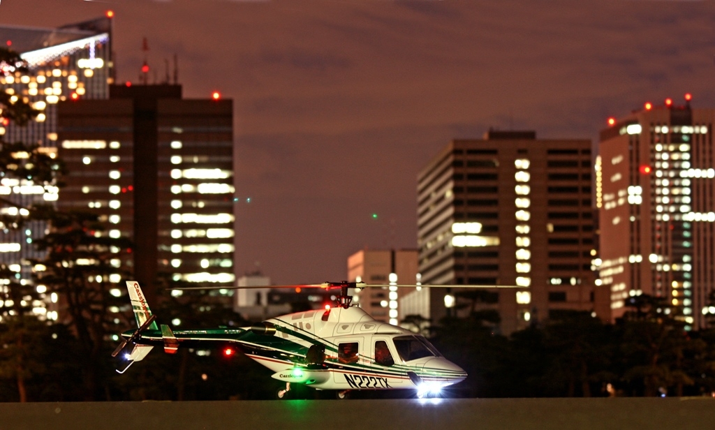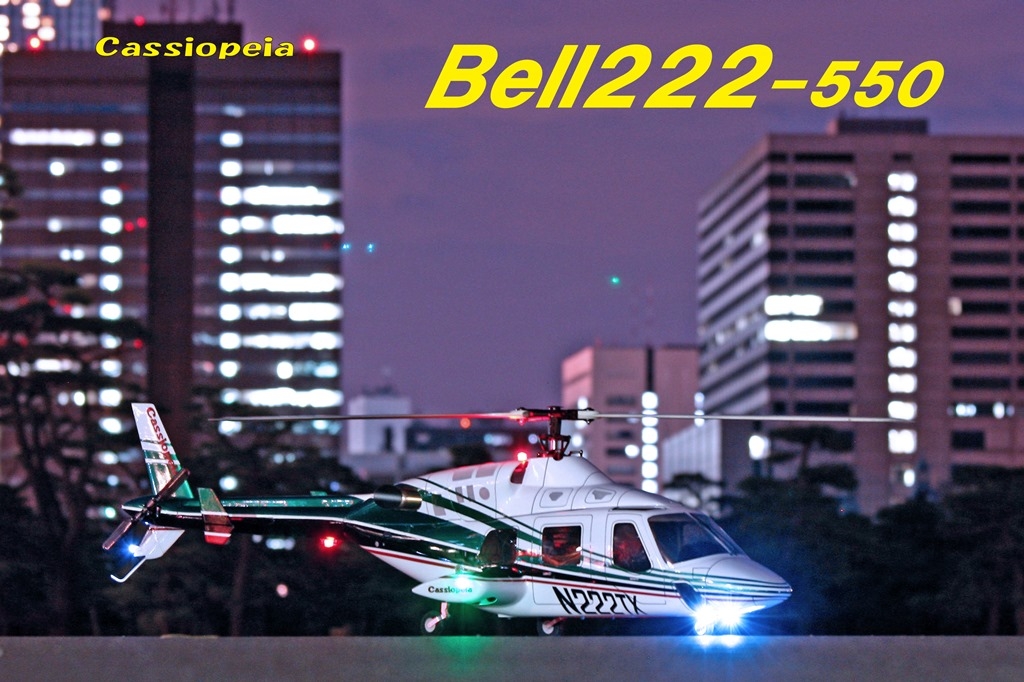 全長1380mm 全幅:380mm ボディ高:285mm ボディ重量980g 価格;79.800-(税別) オレオ脚付き引き込みユニット ¥16.800-(税別) イルミネーションシステム ¥3.500-(税別) ジェットエンジン・サウンドシステム ¥35.000-(予価)(レシプロエンジン切換え付き) ビジネスジェット・ヘリで有名なベル222. VIPを迎えて目的地に移動する様子を再現します。 (大阪平野をバックに撮影。) 都会の夜景をバックに今にも夜間飛行にスタートしそうな風景。(皇居/坂下門で撮影) リトラクトユニットはピアノ線式も準備。 実機らしく飛ばす。 エンジンスタートから始まり、ローター回転をゆっくり上昇、すぐに離陸するのではなく機内で点検作業を考えながら、いざスタート。すぐに浮かせないでせっかく車輪が付いているのですからタキシングから初め滑走路端のスタート地点に移動。 一旦停止でタワーとの交信を考え滑走開始と共に走りながら離陸~目の前で車輪を収納。 上空ではアイドル・アップを入れるのも良いのですが、適度の「実機らしい」速度を維持しながら、優雅にフライト。 軽いボディはアイドルアップを入れると、空力の良さも有ってスタントボディ並みに速度が上がりますが、そこはツメを隠しストールターンぐらいの演技に留め、あくまで「実機らしい」フライトに撤します。 着陸進入も空港の進入空路を意識し、ギャラリーの見える場所でリトラクト・ダウン。 スキッド式ならホバリング~着陸ですが、歩く速度くらいで接地、そしてタキシングでエプロンまで移動しタービン温度を下げながらゆっくり停止。 実機らしく飛ばすのは、F3C,3Dフライトのような派手さは無いのですが、大変難しい演技です。 それだけに奥が深いとも言えます。 スケール感を一層引き立てる別売のイルミネーションシステム(別売)3.500- 明るさは晴れた昼間では見えないですが夕暮れには丁度良い明るさ。部屋のインテリアとして飾るにも最適。 (昼に見える明るさは夕暮れでは目前のホバリングで幻覚を起こしフライトは危険。室内のイルミネーションでは明るすぎて家族の反対に。) 受信機と共通電源でも良いのですが、イルミネーション電源は完全放電しても問題無いニッカドバッテリー(ニッケル水素バッテリー)がお勧め。 350mAhバッテリーで12時間点灯と説明書に書かれてますが、実際は約2日間点灯してます。 サウンドシステム動画 フライトを一層引き立てる「サウンド・システム 機体各部のスイッチを入れ、さて出発時、スタータースイッチをONした時のタービンの回転が徐々に上昇するサウンドを再現。音に合わせてローターを回転させるのはパイロットの演出?? 一通りフライトを終えて着陸、そしてローター回転を止めた時もタービンの回転が落ちて停止する音も再現されます。 まるでタービンの回転状況を思い起こすサウンドです。 機体寸法図 各社550-600クラス(30-50エンジン)に対応。 550クラスの場合はテールブーム延長が必要です。 ノーズ&メインギアーは実機通りの動きが有り着陸のショックを吸収するサスペンション構造。 見るだけでなく実用的なリトラクトユニットです。 バッテリーの交換は背面にハッチを取付けます。 蓋はマグネットとピンでしっかり固定。 実機に有る物は出来るだけ再現。 排気管の熱による「焼け」実機が網の部分はステッカーでは無く「網仕上げ」 各フライト・ライトはレンズや成形で「実機どうり」 給油口やドアヒンジ、取っ手まで高いレベルで仕上げました。 従来のキットでは仕上げ用にステッカーが付属してますが、当社ヘリボディは全てステッカーは貼った上にクリヤー仕上げを行っており経年変化で変色、剥がれなどの耐久性は全く違います。 実機との違いと言えば・・・実機以上に美しく仕上がっている?? 従来のスケールヘリとは違う「本物の模型」に仕上げました。好評発売中のベル222-700クラスに続き、サイズダウンされた550-600クラス用ベル222が新登場。 機体各部の仕上がりは700クラス機と全く同じ。 新しく作っただけあって手の込んだ作りになってます。 一機一機職人が拘って作り、高いレベルで仕上がってます。 基本ボディは中国製ですが、大量生産を感じる仕上がりとは違い、日本の国産職人と同じ工程の下地、磨き、塗装、仕上げの各工程をきっちり仕上げており、美しさだけでなく耐久性、仕上げの軽さはさすが。 中国製??って品質を疑われるニュースを良く聞きますが、カシオペア中国工場は熱心な職人たちの集まりです。 ベル222をはじめ多くの機体を製造している職人工場。 現地工場では、営業的なコストダウンを要求すると拒否される頑固オヤジたち。 でも「良い物を作る!」という事にかけてはコスト無視で夢中で仕上げる職人たち。 良い物を作る為に、頑固オヤジだけでなくイケメン兄ちゃんやモデルじゃないの??って思える女性までが夢中で機体を仕上げてます。 そんな製作工場に日本の職人が作った「良い物」を加えて出荷されるカシオペア製品。 従来のスケールヘリと