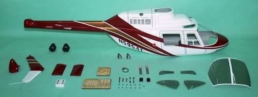 ジェットレンジャー550ボディは実機同様に「焼け」を表現した排気管、各部のパネルライン そしてドアノブやヒンジなど実機の凹凸も表現し、写真で見ると実機と見間違うくらい細かな部分まで再現しました。 機体重量はこのクラスでは最軽量に仕上げ、ハーフキャビンから本機に移行しても安心してフライト出来、 サイドウィンドはクリヤキャノピーを装備し、優れた空力によりスケールでありながら 伸びの有る上空飛行とホバリング安定が行えます。 整備性の良さも追及され、バッテリー交換や整備性に優れたキャビンの分解方法、 そしてマグネットでワンタッチで分解できるシステムを採用。 工具無しでキャビンを分解しバッテリー交換が可能です。 |