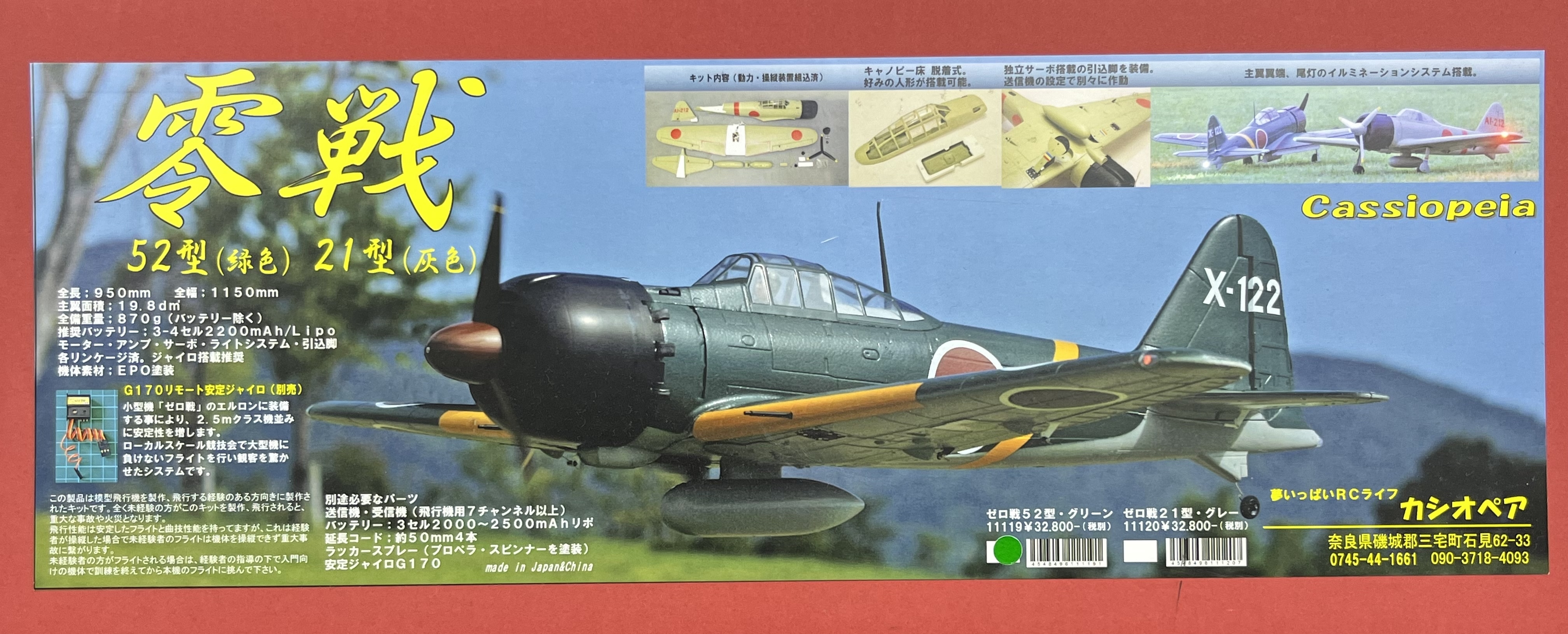 主翼面積:19.8dm 全備重量:870g(バッテリー除く) 推奨バッテリー: 3-4 セル2200mAh/Lipo モーター・アンプ・サーボ・ライトシステム・引込脚 各リンケージ済。ジャイロ搭載推奨 機体素材:EPO塗装 別途必要なパーツ 送信機・受信機(飛行機用7チャンネル以上) バッテリー:3セル2000~2500mAhリポ 延長コード:約50mm4本 ラッカースプレー(プロペラ・スピンナーを塗装) 安定ジャイロG170 G170リモート安定ジャイロ(別売) 小型機「ゼロ戦」のエルロンに装備 する事により、2.5mクラス機並み いく に安定性を増します。 ローカルスケール競技会で大型機に 負けないフライトを行い観客を驚か せたシステムです。 この製品は模型飛行機を製作、飛行する経験のある方向きに製作さ れたキットです。全く未経験の方がこのキットを製作、飛行されると、 重大な事故や火災となります。 飛行性能は安定したフライトと曲技性能を持ってますが、これは経験 者が操縦した場合で未経験者のフライトは機体を操縦できず重大事 故に繋がります。 未経験者の方がフライトされる場合は、経験者の指導の下で入門向 けの機体で訓練を終えてから本機のフライトに挑んで下さい。 |