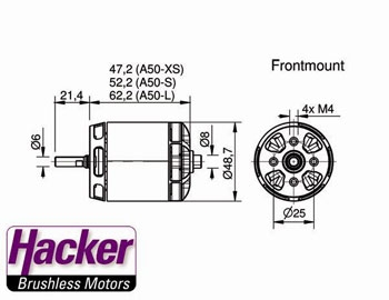 ●パワーセットアップ例1 リポ8セル ペラサイズ:16X10E 電流値:42A パワー:1218w 回転数:7750rpm ●パワーセットアップ例2 リポ8セル ペラサイズ:17X10E 電流値:58A パワー:1680w 回転数:7650rpm ●ラジアルマウント、プロペラアダプターなども同梱されています。 ●電動グライダー・・・・・15kg程度まで ●スポーツ・スケールなど・・3.5-6kg程度まで ●スタント・3D・・・・・・4.0kg程度まで ●ヘリ・・・・・・・・・・4.0kg程度まで Specification: KV値 300rpm/v,最高回転数9000 対応セル数 6-8Li-Po 連続電流値 45A 最大電流値 60A シャフト径 6mm 重量 445g サイズ(直径X全長) 48.7x62.2mm 最適タイミング 20-25度 スイッチング周波数 8-16Khz 極数 14極 |