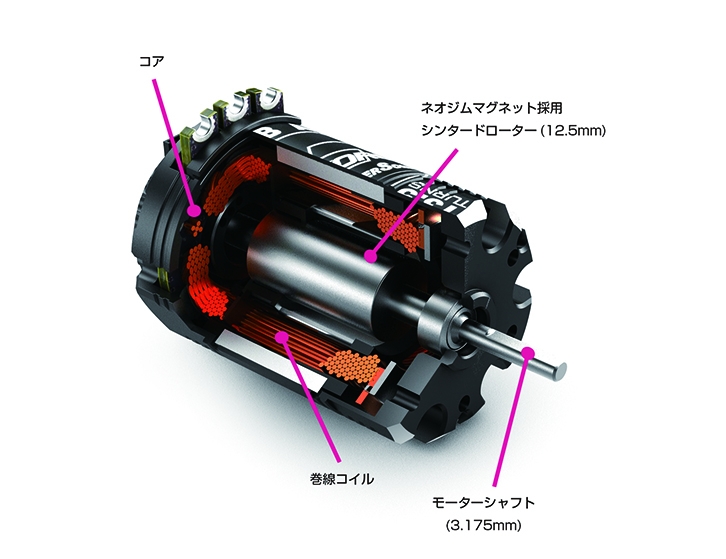 モーターパフォーマンスの追及は当然のこと、マシンとのマッチングまでも性能の一つと考えて開発した、新世代ブラシレス。デュアルセンサーポートで配線の自由度を大幅にアップ。最上のパフォーマンスを予感させるクールなデザインは、どのようなマシンにも完全なマッチングを実現します。 センサーポート2 カ所装備 アルミ削り出し3 ピースモーターカン ヒートシンク型エンドベル アルティメットクーリングデザイン 12.5mm シンタードローター JMRCA、BRCA認証済 |