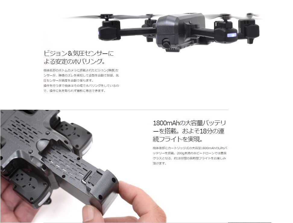 1800mAh大容量バッテリーを搭載、約18分の連続フライトが可能