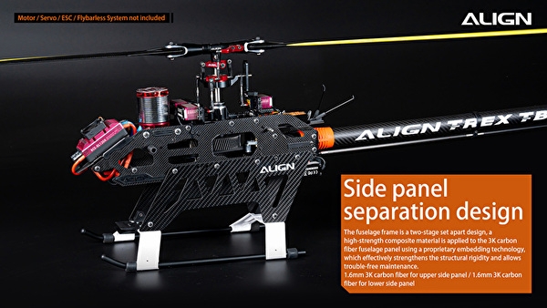 ●Length: 1218mm ●Height: 353mm ●Width: 183mm ●Main Blade Length: 600mm ●Main Rotor Diameter: 1339mm ●Tail Length: 95mm ●Tail Rotor Diameter: 253mm ●Motor Belt Pulley: 23T ●Belt Pulley: 44T ●Front Drive Main Shaft: 15T ●Main Drive Gear: 62T ●Autorotation Tail Drive Gear: 28T ●Tail Drive Gear: 23T ●Drive Gear Ratio: 7.89:1:5.04 ●Max RPM(approx.): 2400RPM ●Weight: Approx. 1.8kg Accessories ●TB60 Kit Set x 1 set ●600 Carbon Fiber Blades x 1 set ●95 Carbon Fiber Tail Blades x 1 set ●Lube Pack x 1 |