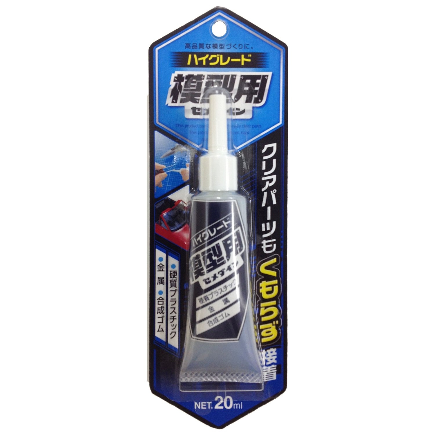 メッキーパーツにも使える! 無溶剤・水性タイプだからいままで使えなかったところにもOK! ●通常パーツ+クリアパーツ ●クリアパーツ+クリアパーツ ●クリアパーツ+メッキパーツ 【用途】 ・カーモデルのウィンドガラスとボディ ・飛行機モデルのキャノピーの固定に ・クリアパーツ同士の接着 ・クリアパーツとメッキパーツの接着に 【特長】 ポリスチレン製プラスチックモデルのクリアパーツ、メッキパーツをきれいに接着できる 無溶剤の水性タイプなので安全、プラパーツを溶かさず、汚さず接着できる パーツにダメージがない 硬化後は透明になるので接着部分が目立たない |