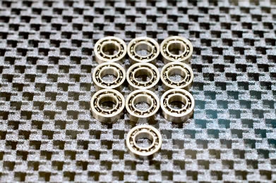 ベアリングに封入されたグリスは耐久性とスムーズな回転を両立させた高品質なタイプ(日本製)を使用し、ラジコン模型用に適する量を封入しています。ベアリングの精度をあらわす規格はABEC-7グレードです。ベアリングメーカーの協力無しには実現しないこだわりの製品です。 |