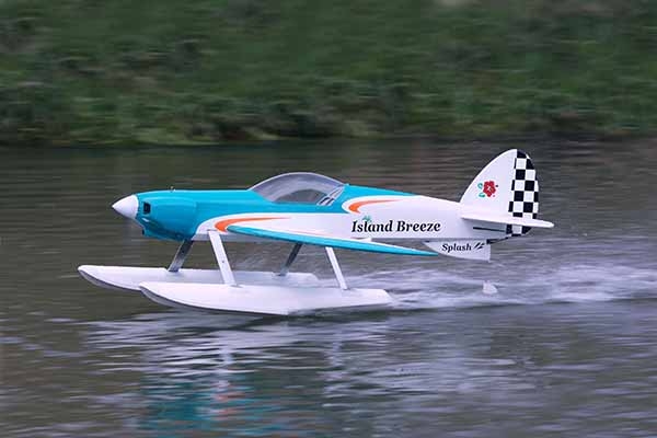 リゾートを思わせる美しい機体「アイランドブリーズ」の名前にピッタリな水上機バージョンが登場。専用に開発された新設計のフロートにより、素晴らしい離水性能と着水性能を発揮します。防水性を考えた主翼の上面リンケージやアウターパイプを使ったカーボンリンケージ、フロート装着による前面空気抵抗の増加に対応するためのフィンの追加などOK模型ならではの長年の水上機開発のノウハウを惜しみなく投入しました。