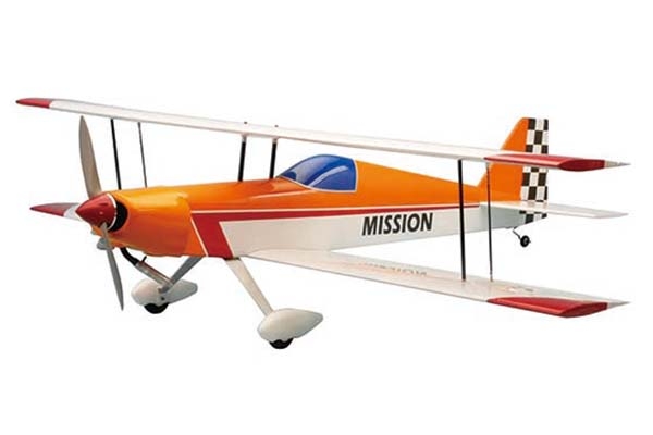 手ごろなサイズで複葉機のスポーツフライトを楽しむことが出来る4サイクル60(2サイクル45)クラスのARF完成複葉スポーツ機です。水平対向エンジンを搭載したアクロ機をイメージした胴体に後退角のついた2枚の主翼を配したモダンなスタイルです。セットは胴体、主尾翼共にバルサ製、フィルム貼完成仕上げ、57mmABスピンナーやメインギア、タイヤ、ホイルパンツ、グロー用燃料タンク、リンケージパーツなどが入っているARF完成機です。エンジンは4サイクル60エンジンがベストフィットですが、2サイクルエンジンや電動ユニットの搭載も考えた構造になっています。日本製。