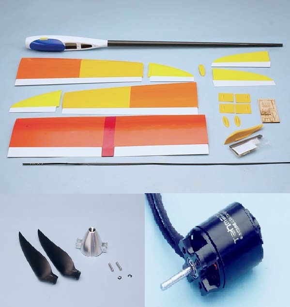 前縁に直線の無いハイアスペクトな主翼は素晴らしい滑空性能を発揮します。 左右独立した大型フラップは、スポットランディングに威力を発揮します。 抵抗を減らすために突起を最小限に抑えたリンケージです。 度重なるテストの結果決定された尾翼面積と形状は効率よく、空気抵抗も抑えられています。 視認性の良いカラーリングは、距離を離す競技においても威力を発揮します。グラスファイバー製のポッドは余裕を持たせてあり、多種のモーターを搭載することが可能となっています。 キャノピー内にサーボ、モーター、バッテリー、ESCと受信機が収まります。 組みあがった後も、主翼は3分割出来、運搬に便利です。 テープで抜け止めにします。飛行する時は翼端パネルをカーボンカンザシで中央翼と接合します。 中央の上反角により、小さい旋回に対応しやすくなっています。 リブ組フルバルサプランクの主翼は、研究された翼型を忠実に再現しています。バランスの取れた尾翼は抵抗も少なく、サーマルハンティングに広範囲に飛行させることも可能。3分割主翼は持ち運びに便利なコンパクトさを実現しています。 モーター、折ペラセットが付属したDXタイプ ■セットの主な内容 ・半完成胴体(グラス製ポッド、カーボンテールブーム) ・A フイルム貼済み主尾翼 ・プラスチック製キャノピー ・リンケージパーツ ・コントロールホーン ・カラーステッカー ・ブラシレスモーター Tahmazo ER-221912d(48855) ・折ペラブレード Tahmazo 10×6/8(48690) ・スピンナーハブセット Tahmazo AT38/8C3.18SM(48806) ・組立説明書 ※この機体を完成、飛行させるには他に用意するものがあります。 ■主な別途準備品 ・飛行機用プロポ送信機 ・小型受信機 ・サーボ Tahmazo TS-1014(48543) 6個 ・スピードコントローラー Tahmazo Pro.C A-30(48827) ・バッテリー Tahmazo LP-3S1P600RE (48861) ・コネクター PILOT ゴールドコネクター4.0BL (33234) ・ PILOT 延長コード ST 100mm x2 (47498) ・ PILOT 延長コード ST 200mm x4 (47499) ・充電器 Tahmazo リポ専用充電器 (48451) ・瞬間接着剤 OKボンドHW(43010)、FX(43451) ・エポキシ接着剤(30分硬化型) ・PILOT サンディングブロック(25042) ・サンドペーパー ・ハンダ付け用具一式(ハンダごて、ヤニ入りハンダなど) ・その他、一般的な工具(カッターナイフ、ドライバーなど) 機体諸元 ・ 全長 Length:1158mm ・ 全幅 Wing Span: 1996mm ・ 主翼面積 Wing Area: 33.6dm2 ・ 全備重量 Weight: 700-800g ・ モーター Motor:Tahmazo ER-221912d(48855) ・ RCメカ Radio:AL、FL、RD、EV、ESC ・ 完成後の主翼は3分割出来ます。 ・ 飛行の難易度:中・上級者向け ・ 機体の完成状態:フイルム貼完成 ・ 搭載可能なパワーユニット:電動モーター |