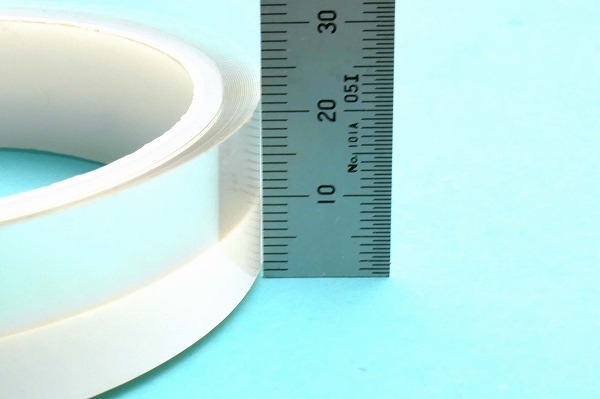 テープは20mm巾ですが、通常の粘着テープと異なり粘着剤は巾9mmのみとなっています。