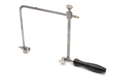 FRP板、CFRP板、アルミ板、真鍮板、ポリカーボネート板、プラスチック板等の精密加工に最適な糸鋸弓です。剛性が高く、正確な加工が行えます。また奥行きが深く、140mmまで加工が可能です。
