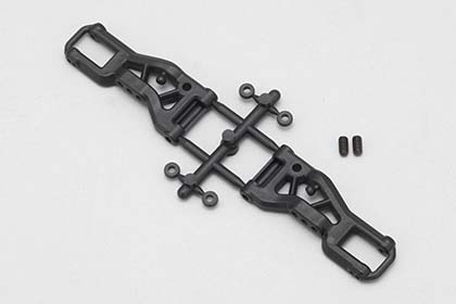 YD-4標準パーツのフロントサスアームです。サスアーム内側の前後スペーサーとダウンストップ調整用のスクリューも付属。