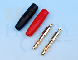 充電器に接続する充電コードを自作する場合の充電器側のプラグです。たいていの充電器は4mmのメスコネクターになっていますので、このプラグは4mmのゴールドコネクター(オス)になっています。