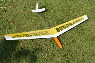 スパン1270mmSALグライダー 桁上部に1mmカーボンロッドを配置し、トラス構造で捻り剛性がUPしました。 スパン 1270mm 機長 890mm 主翼面積 16.0dm2 標準重量 150g 翼型 AG12MOD RC装置 2ch(エレベーター ラダー) ○キット以外に必要な物 RC装置 小型受信機(3~7g) 4~6g台サーボX2 1Sリポバッテリー(150~450mAh) 被覆フィルム |
