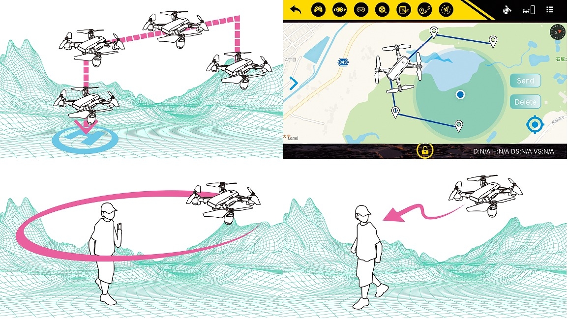 インテリジェントフライトが可能に。 飛行重量わずか182gの航空法対象外のホビードローンながら、GPSセンサを搭載。GPSの位置情報を取得する事で、手放しでもその場で留まり続ける自律安定性を実現。ホームポイントへ自動で帰還する、RTH(リターントゥホーム)をはじめ、数々のインテリジェントフライトを可能にしました。 Wi-Fi接続でスマホやタブレットをLIVEモニターに。 お手持ちのスマホに専用アプリをインストールすれば、映像をリアルタイムで映し出すライブ中継が可能に。 GPSセンサによる高度な自律安定性により、狙ったアングルからの撮影も思いのままに。 最大飛行距離が変えられる2つのモードを搭載。 INGRESSの初期値は安全のため、飛行距離・高度共に最大30mに設定されています。エキスパートモードに切替えることで最大300mまでフライト可能。 また、アプリから距離・高度を数値で設定する事ができるので、フライトする環境や操作レベルに応じて設定できます。 設定した範囲を超えようとすると、まるで見えない壁に押し返されるようにそれ以上進む事ができません。 初期値:最大飛行距離30m/最大飛行高度30m 最大値:最大飛行距離300m/最大飛行高度120m 動画も静止画もフルHD画質での記録が可能。 機体とスマホをW-iFi 接続する事で、アプリ上からフルHD画質(1920×1080)での撮影が可能に。 カメラには広角レンズを採用しているので、広範囲を画角に収めるダイナミックな撮影が楽しめます。 動画:1920x1080(MP4形式) 静止画:1920x1080(JPG形式) 持ち運びに便利なグリップ&ショルダーベルト付きキャリングケース。 製品一式はグリップ付きの専用ケースに入っており、ショルダーベルトも付属しているので、持ち運びの際にキャリングケースとしても重宝します。 インナーのクッション材がドローンと送信機を衝撃から保護。アクセサリー類や小物類を収納できるメッシュポケット付き。 GPS搭載機ならではのインテリジェントフライトを手軽に。 GPSセンサーの搭載により、高度・座標を自動で制御 182gの軽量&コンパクト設計! アームを折り畳んでコンパクトに収納 動画・静止画共にフルHD画質での記録が可能 ボタンひとつでホームポイントに帰還するRTH(リターントゥホーム)機能 地図に打ったピンに沿って飛ぶ「マルチポイントモード」を搭載 操縦者に追従しながらフライトする「フォローミーモード」を搭載 操縦者を中心に旋回飛行する「サークルフライトモード」を搭載 操縦者視点で操縦可能なオリエンテーションモードを搭載 最大飛行距離、高度を数値で設定可能(最大距離300m/最大高度120m) 広角120°ワイドレンズ仕様の1080pフルHDカメラを搭載 Wi-Fi通信でスマホとリンク、LIVEビューやスマホならでは操縦が可能に 持ち運びに便利な専用キャリングケースが付属 MODE1⇔MODE2切替え可能な2.4GHz送信機付属(技適マーク取得済) 7.4V 900mAhの大容量バッテリーを搭載、およそ13分のフライトが可能 |