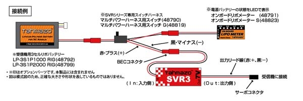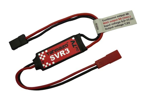 ・ハイボルテージ仕様の受信機、サーボ用に開発したスイッチング電源です。 ・出力電圧はハイボルテージ機器に対応した7.2V(注1) ・僅か8gの超小型、超軽量でも出力は連続4Aと余裕(最大6A/3秒)。 ・電圧の変換はSVRシリーズで実績のあるスイッチング方式を採用。効率90%でほとんど電力ロスがありません。 ・Tahmazo受信機用リポバッテリーRIGシリーズ(48795,48799)のようなリポバッテリー(3セルを推奨)と組み合わせて使用すれば急激に負荷が変動しても受信機、サーボに供給する電圧がほとんどかわらないので受信機の安定動作につながります。 ・オプションの「パワーハーネス用スイッチ」を使用すれば面倒な配線も楽々。 ・「オンボードリポメーター」(48791)または「オンボードリポメーターS」(48823)を本装置に接続すれば電源リポバッテリーの状態もチェック出来ます。(オンボードリポメーターはリポ4セルでは使えません) (注1)本製品はハイボルテージ(HV)対応機器を動作させるためのものです。ハイボルテージ未対応のサーボなどに使用すると機器が故障したり破損する場合があります。詳しくはお使いになる機器のメーカーなどにお問い合わせください (注2)プロポは2.4GHz帯のものをお使い下さい。 (注3)安定して7.2Vを供給するために電源はリポ3セルから4セルをお使いください。 主要規格 型 式:スイッチング方式電圧レギュレーター 出力電圧※:7.20V(入力電圧12.0V、出力3A時) 出力電流※:連続4.0A、5.0A/45秒、最大6.0A/3秒 入力電圧:9.0V~17.0V=リポ3セル~4セル相当 変換効率:90.0 % (電源電圧 12V時) 重 量:8.0g(リード線、コネクタ含む) サイズ:横幅34mm(リード線は除く) 縦15mm 厚さ7.5mm コネクタ:入力側=BECコネクタメス 出力側=JRタイプサーボコネクタオス リード線:AWG20シリコンケーブル コード長=入出力側共に約100mm ・2.4GHz帯プロポの使用を推奨 ※データは当社実測値:室温26℃、室内、解放空間にて測定。データは気温、通風など冷却条件によって大きく変動します。 オプションパーツ (品番48790)パワーハーネス用スイッチ (品番48819)パワーハーネス用スイッチGタイプ(エンジン機など耐振動、耐久性が必要な場合におすすめ) (品番48791)オンボードリポメーター(2セル3セル用):電源リポの状態をチェック出来ます (品番48823)オンボードリポメーターS:3色に変化するLEDで電源リポの状態をチェック出来ます (品番48792)LP-3S1000RIG:受信機電源用1000mAhリポ (品番48799)LP-3S2000RIG:受信機電源用2000mAhリポ |