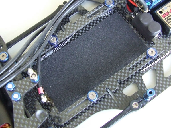 シャーシのバッテリー搭載部に最適な極薄タイプの滑り止めシートです。厚さはわずか0.3mmなので本製品を使用しても、バッテリーの重心変化はほとんどありません。