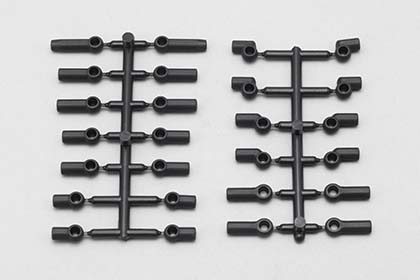 YD-4標準パーツのボールエンドキャップです。キットのタイロッド用など、標準で使うストレートのものとは別に、ホイールとの干渉を避けるためのオフセットタイプも付属します。