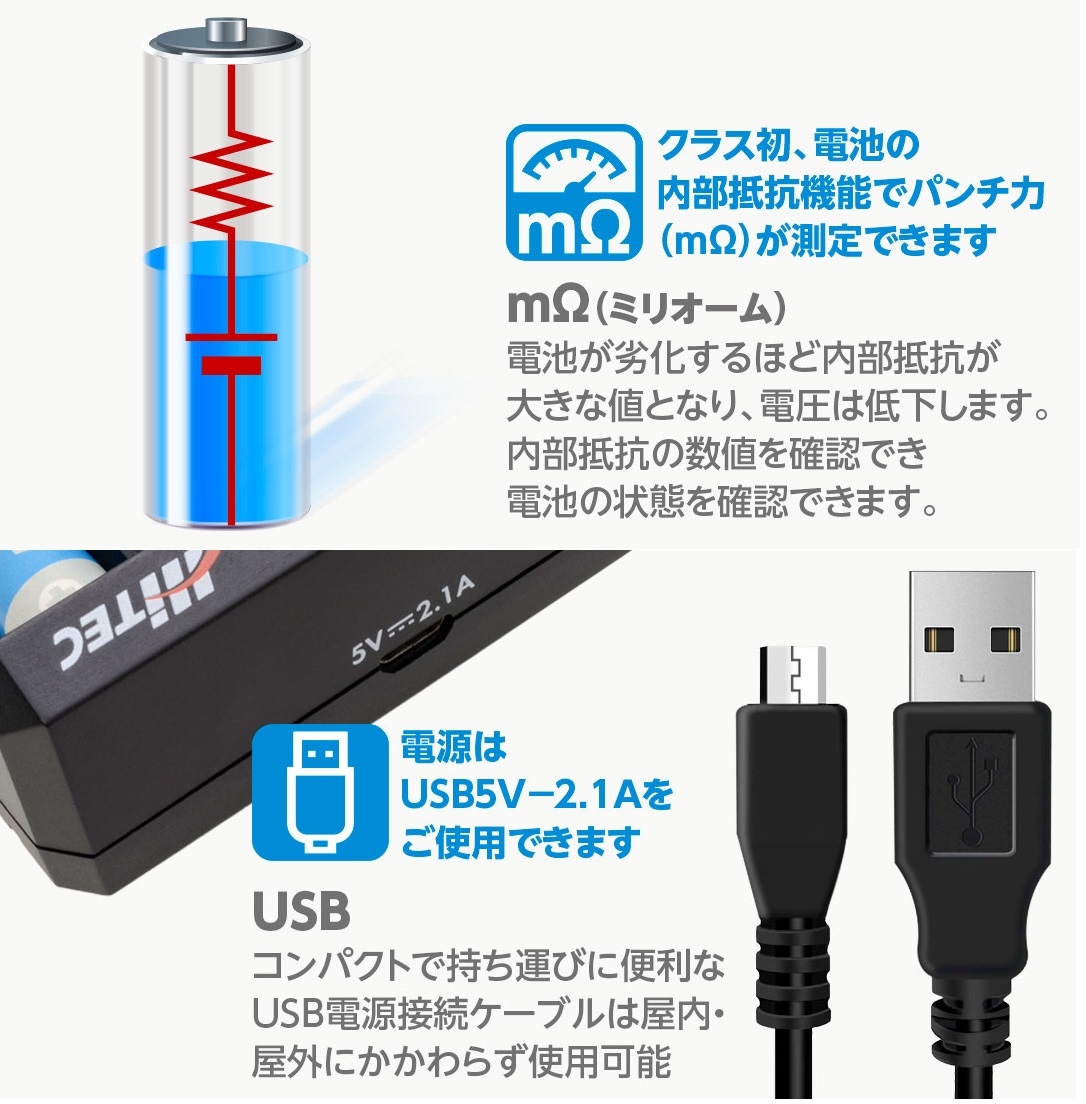 充電器では世界最高峰の技術レベルを誇るHitecのノウハウをすべて投入! クラス初、電池のパンチ力が見える内部抵抗測定機能を装備、電池の真の実力が分かります。 お手持ちの電池の実力を極限まで引出し、走りを変えます! 単3・単4形 充電池4本同時充・放電 AAとAAAバッテリーを同時にハイレベル充電放電 CHARGE(充電) 充電する電池の容量にあった電流値を選択して充電を行います DISCHARGE(放電) 過放電を防止し限界の0.9Vまで放電を行います 電池のリフレッシュ機能でダレた電池を復活させます REFRESH(リフレッシュ) バッテリー残量を全て放電してから充電を行い本来の性能を引き出す機能 クラス初、電池の内部抵抗機能でパンチ力(mΩ)が測定できます mΩ(ミリオーム) 電池が劣化するほど内部抵抗が大きな値となり、走行した時に電圧は低下します。内部抵抗の数値を確認でき電池の状態を確認できます。 電源はUSB5V-2.1Aをご使用できます USB コンパクトで持ち運びに便利なUSB電源接続ケーブル(30cm)は屋内・屋外にかかわらず使用可能 セット内容 ※ X4 Advanced Mini 本体 USB電源接続ケーブル 日本語説明書 ※すべて税抜表記をしております。※ 充電池・USB電源アダプタは含まれておりません。 ※製品の仕様・外観・価格などは製品改良のため、予告なく変更になる場合がありますのでご了承下さい。 基本仕様 対応充電池 単3・単4型 Ni-MH/Ni-Cd 充電池 スロット 4スロット装備 入力電源 5V 2.1A 使用 動作モード 充電、放電、サイクルリフレッシュ、電池内部抵抗計測 LCD表示 電圧、容量、電流、電池内部抵抗、時間 充電電流 200mA / 500mA / 700mA / 1000mA / 1500mA 放電電流 100mA / 250mA / 350mA / 500mA / 650mA 電池許容範囲 最大 3000mAh トリクル充電 50mA サイズ 108 × 73 × 28 mm 重量 106 g |